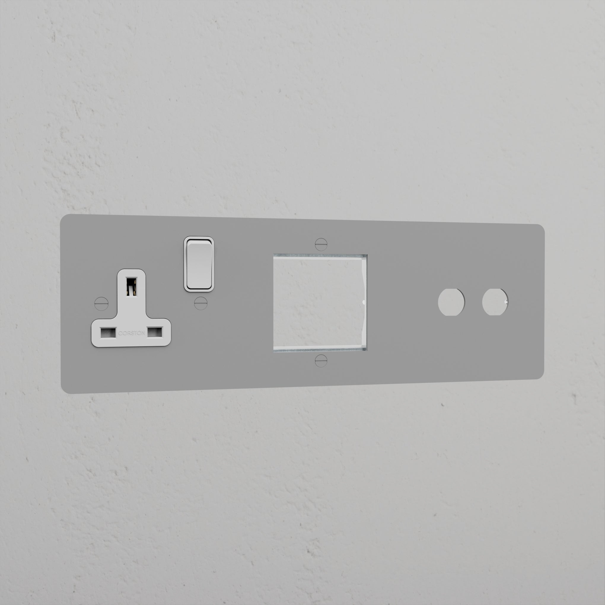 Single Socket UK & 1G 50mm Module & 2G Switch Plate
