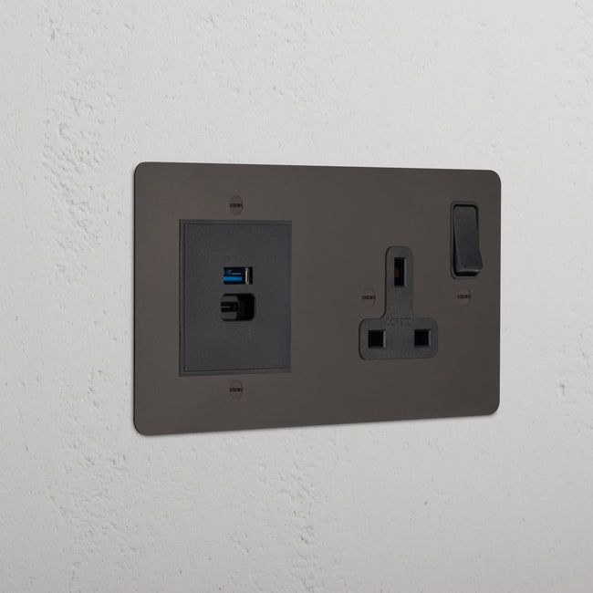 This double mixed socket combines a single standard UK socket and a dual USB-A+C socket on one plate.