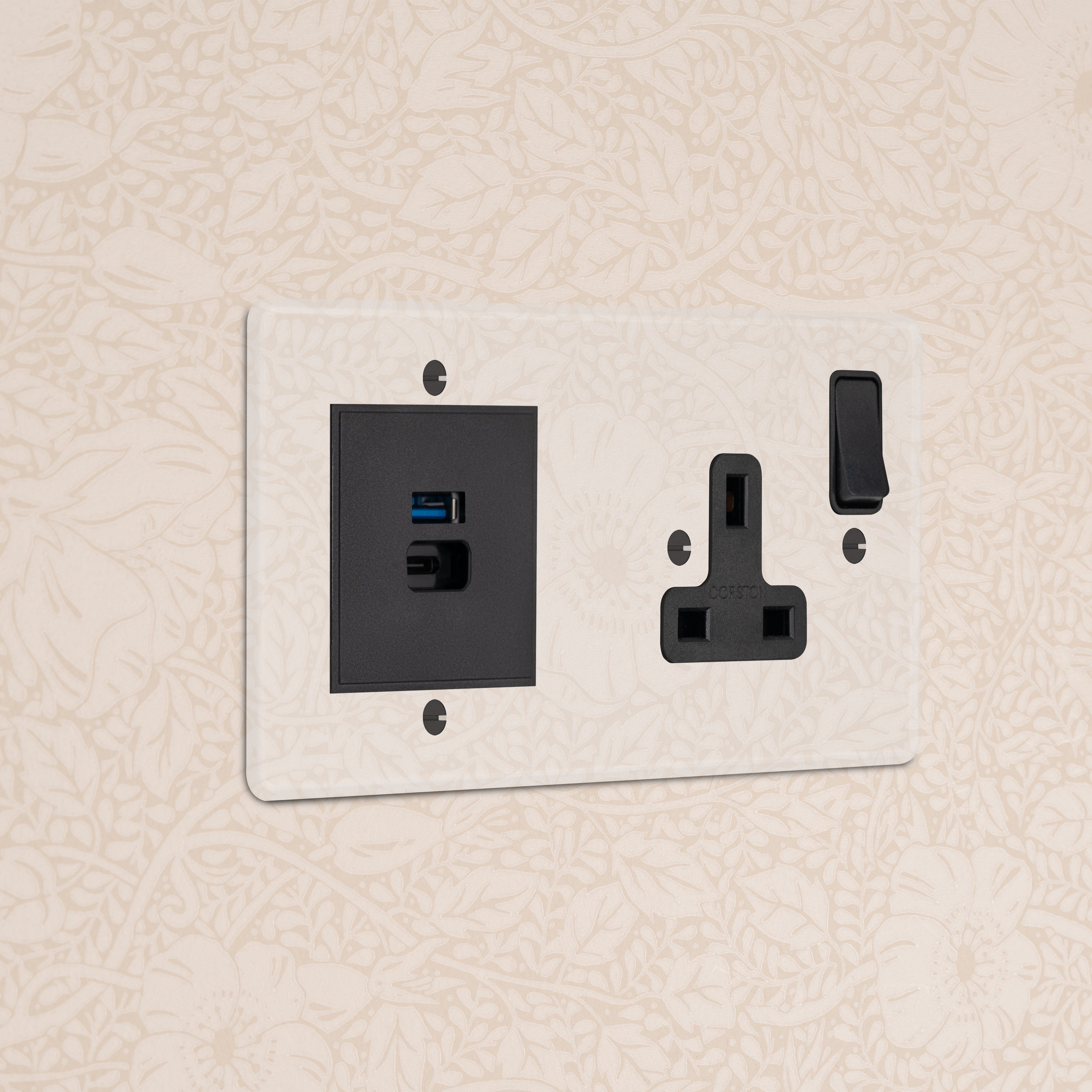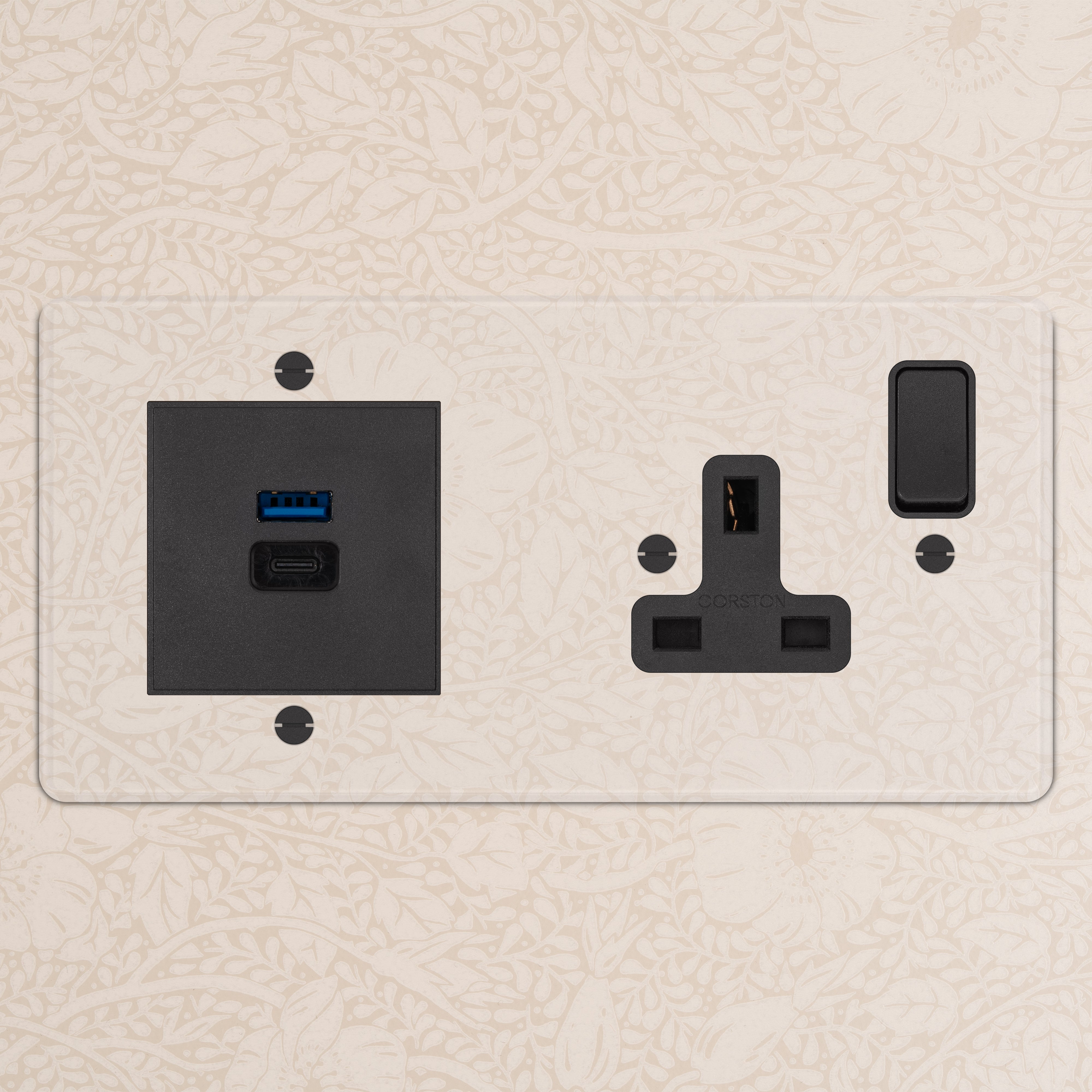 This double mixed socket combines a single standard UK socket and a dual USB-A+C socket on one plate.