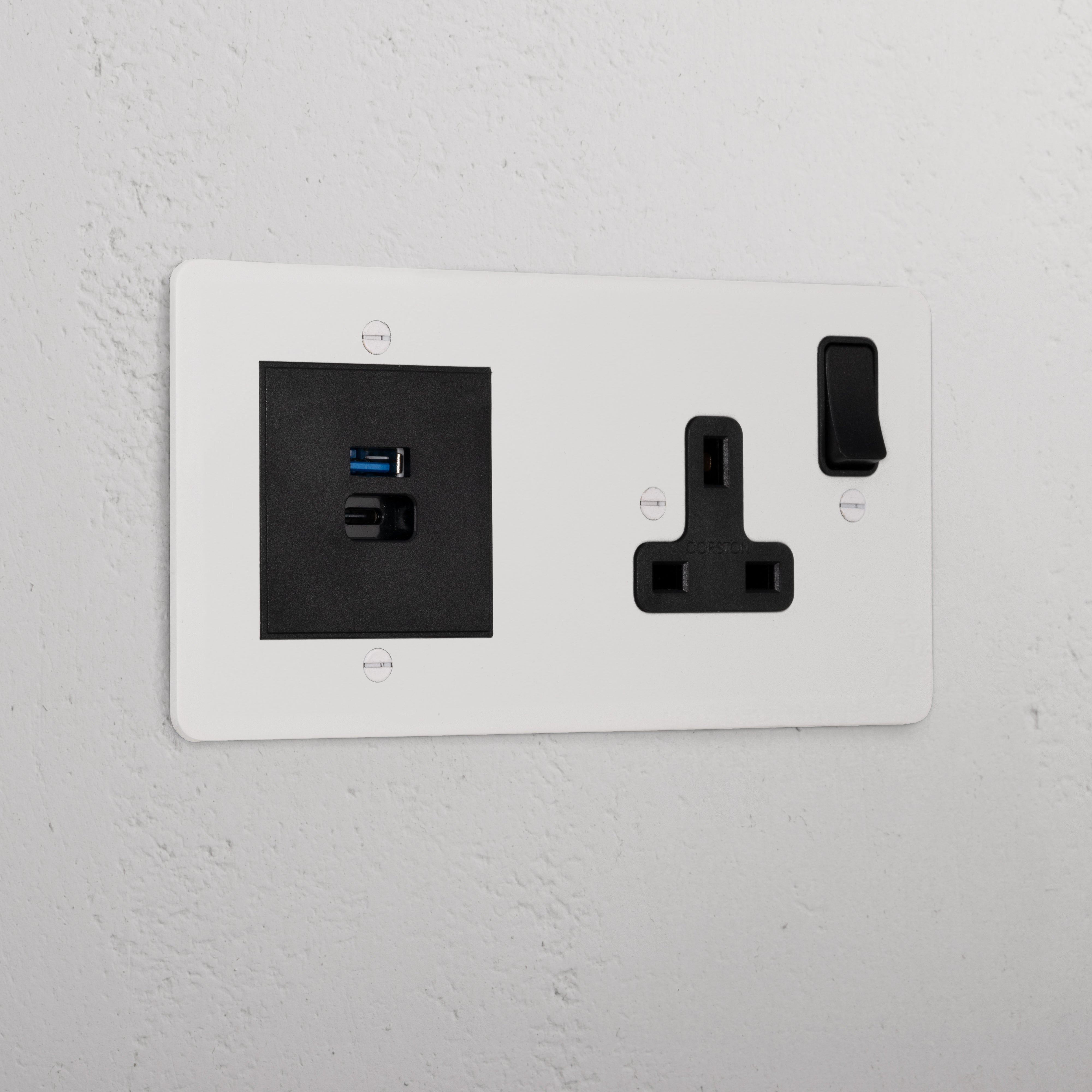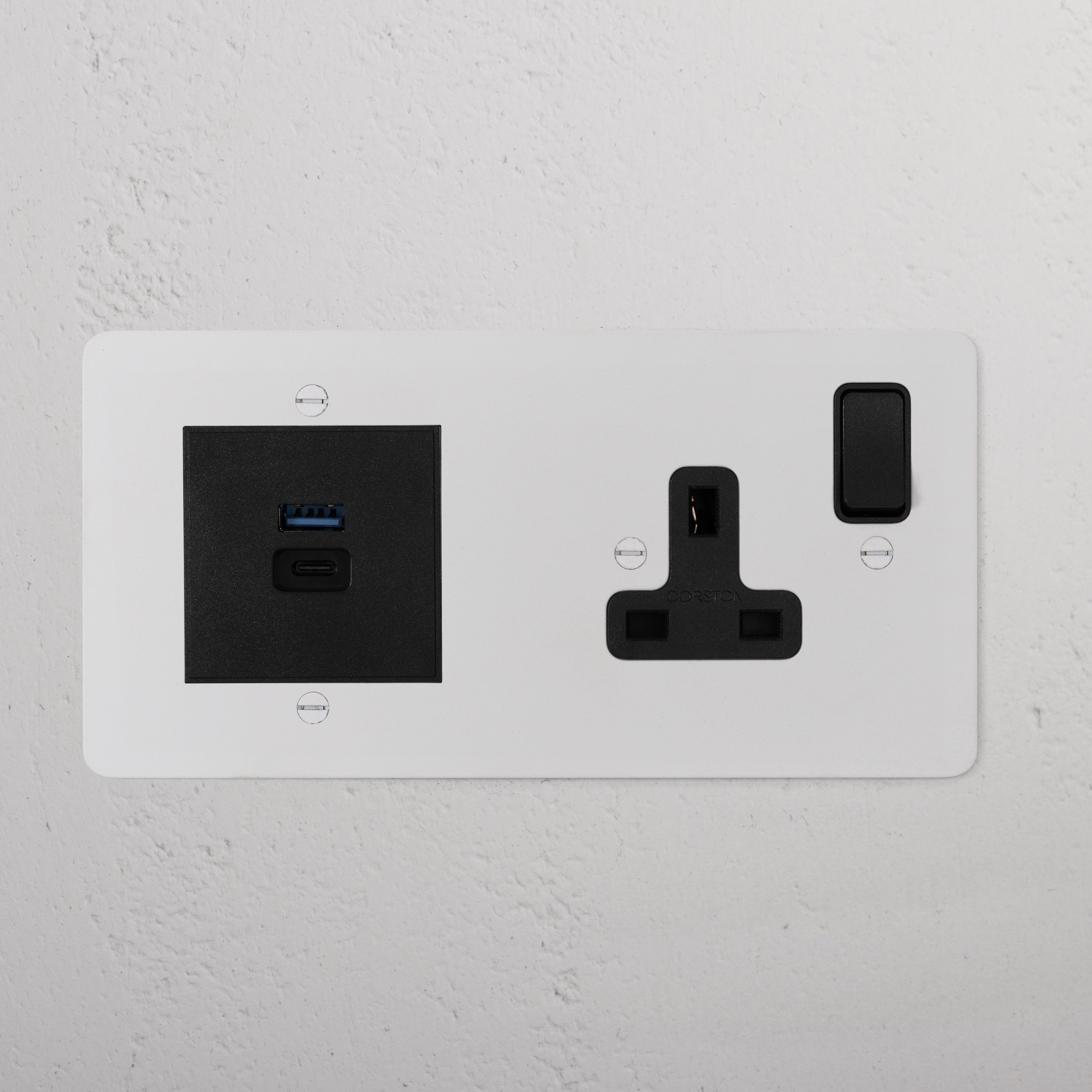 This double mixed socket combines a single standard UK socket and a dual USB-A+C socket on one plate.