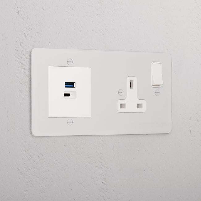 This double mixed socket combines a single standard UK socket and a dual USB-A+C socket on one plate.