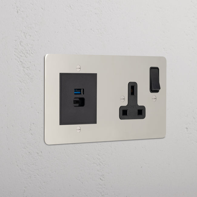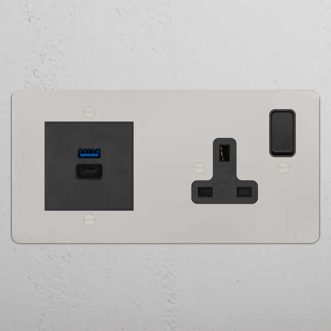 This double mixed socket combines a single standard UK socket and a dual USB-A+C socket on one plate.