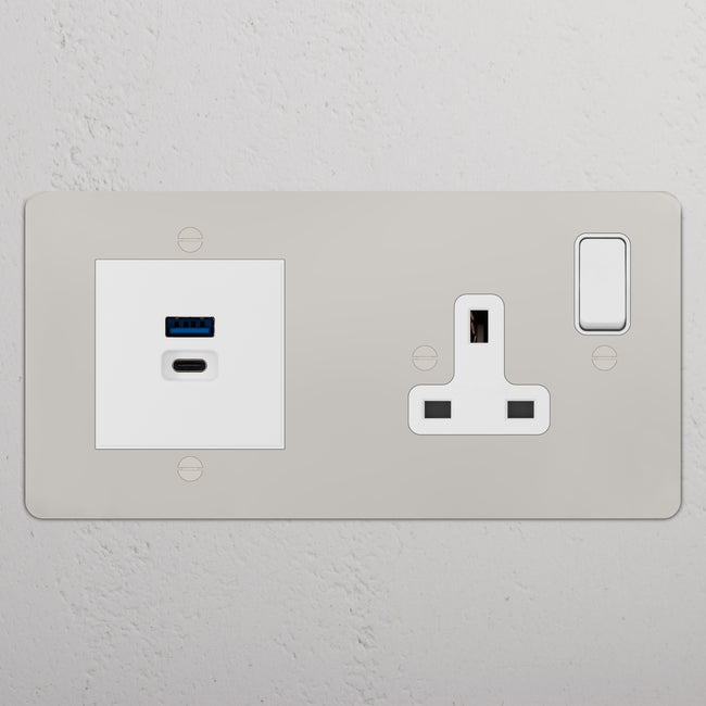 This double mixed socket combines a single standard UK socket and a dual USB-A+C socket on one plate.