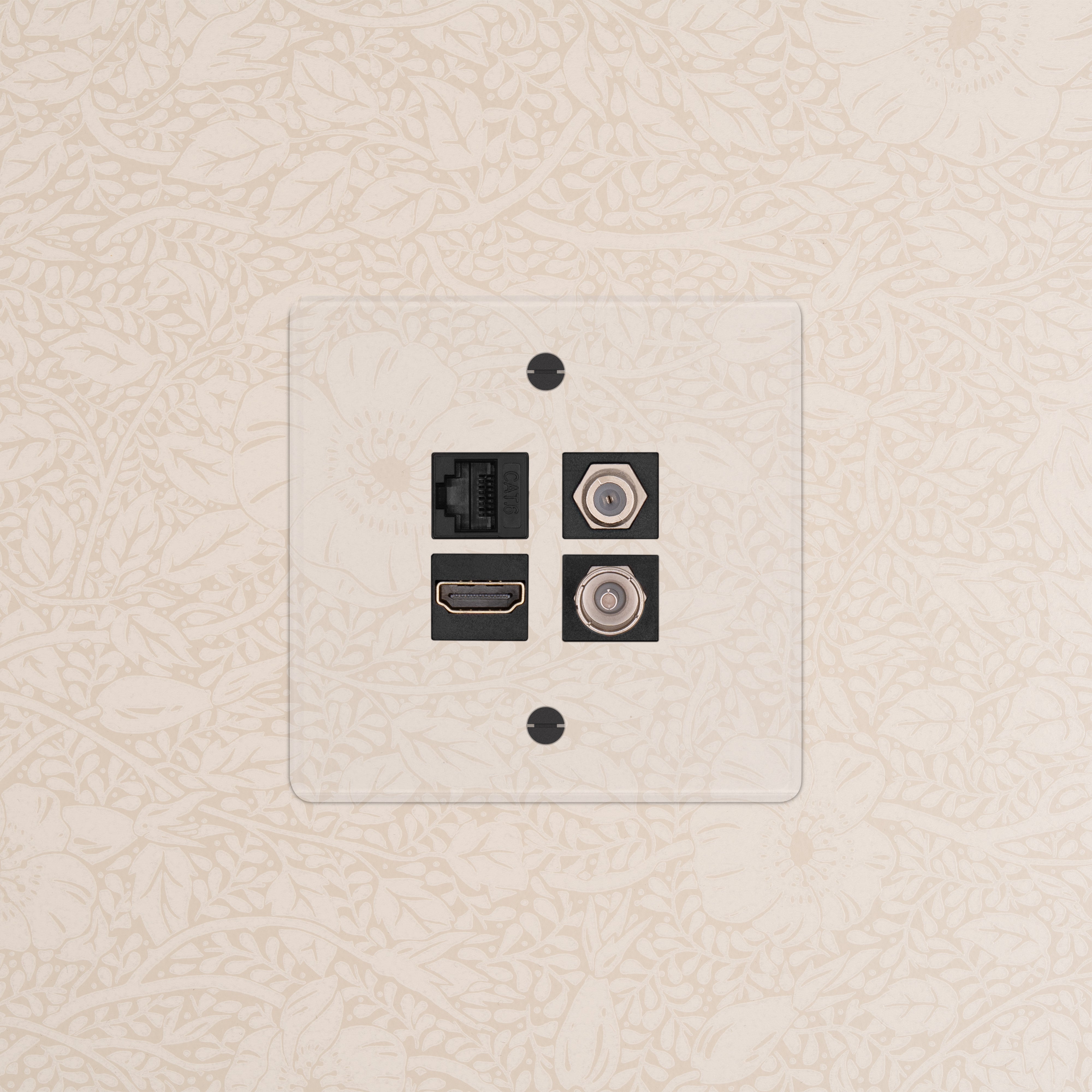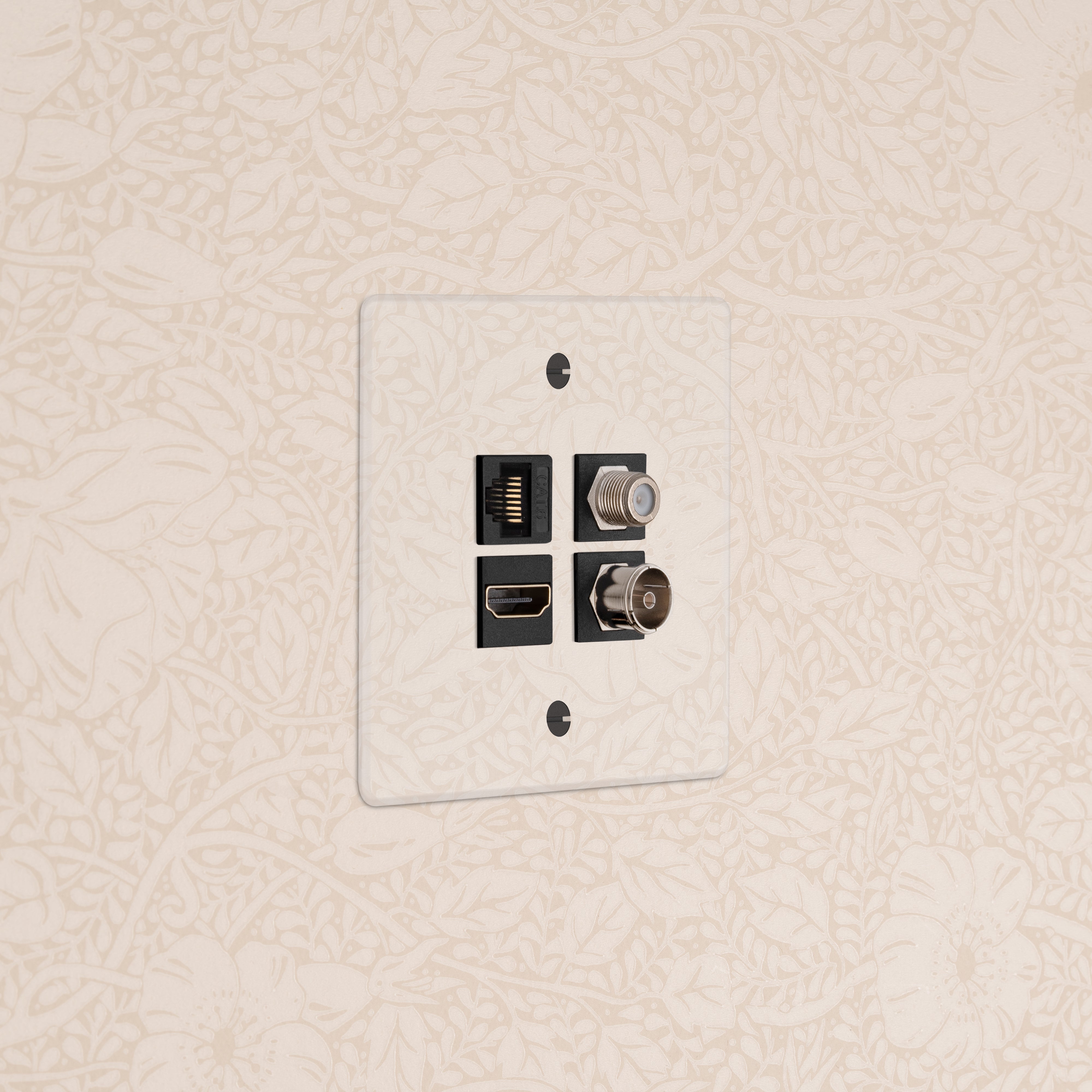 This single mixed socket combines a TV, satellite, HDMI and CAT6 socket on one plate and keeps cable clutter to a minimum.