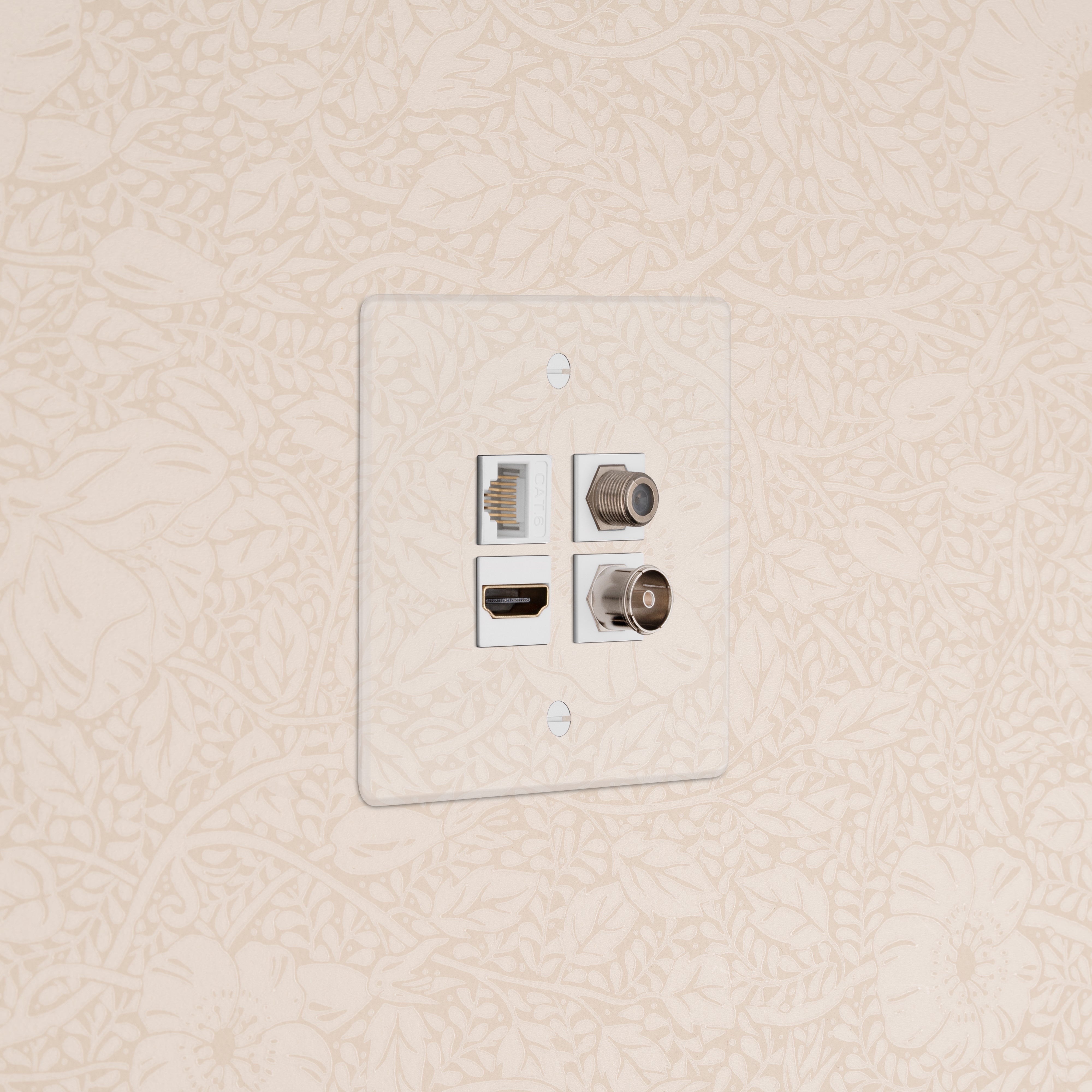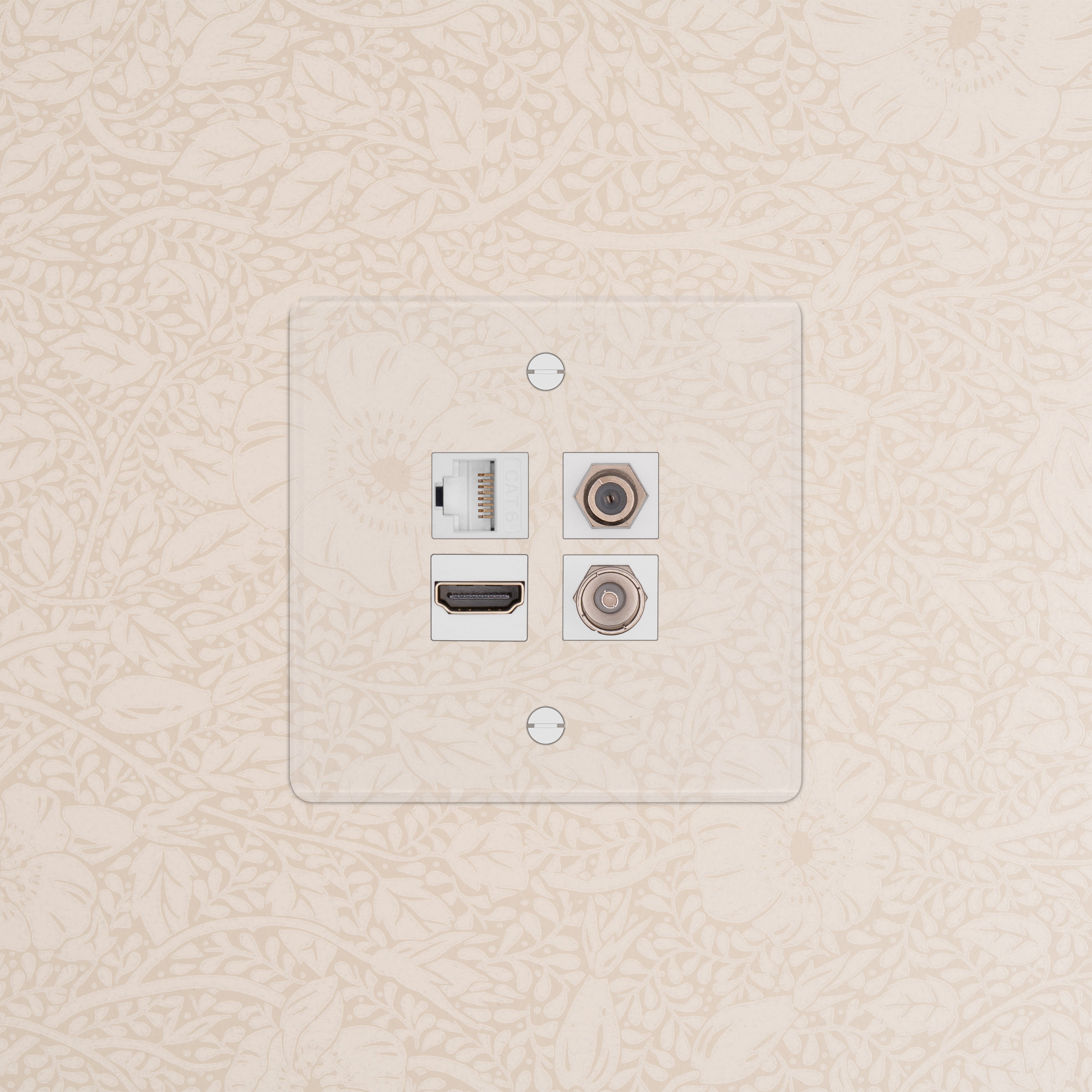 This single mixed socket combines a TV, satellite, HDMI and CAT6 socket on one plate and keeps cable clutter to a minimum.