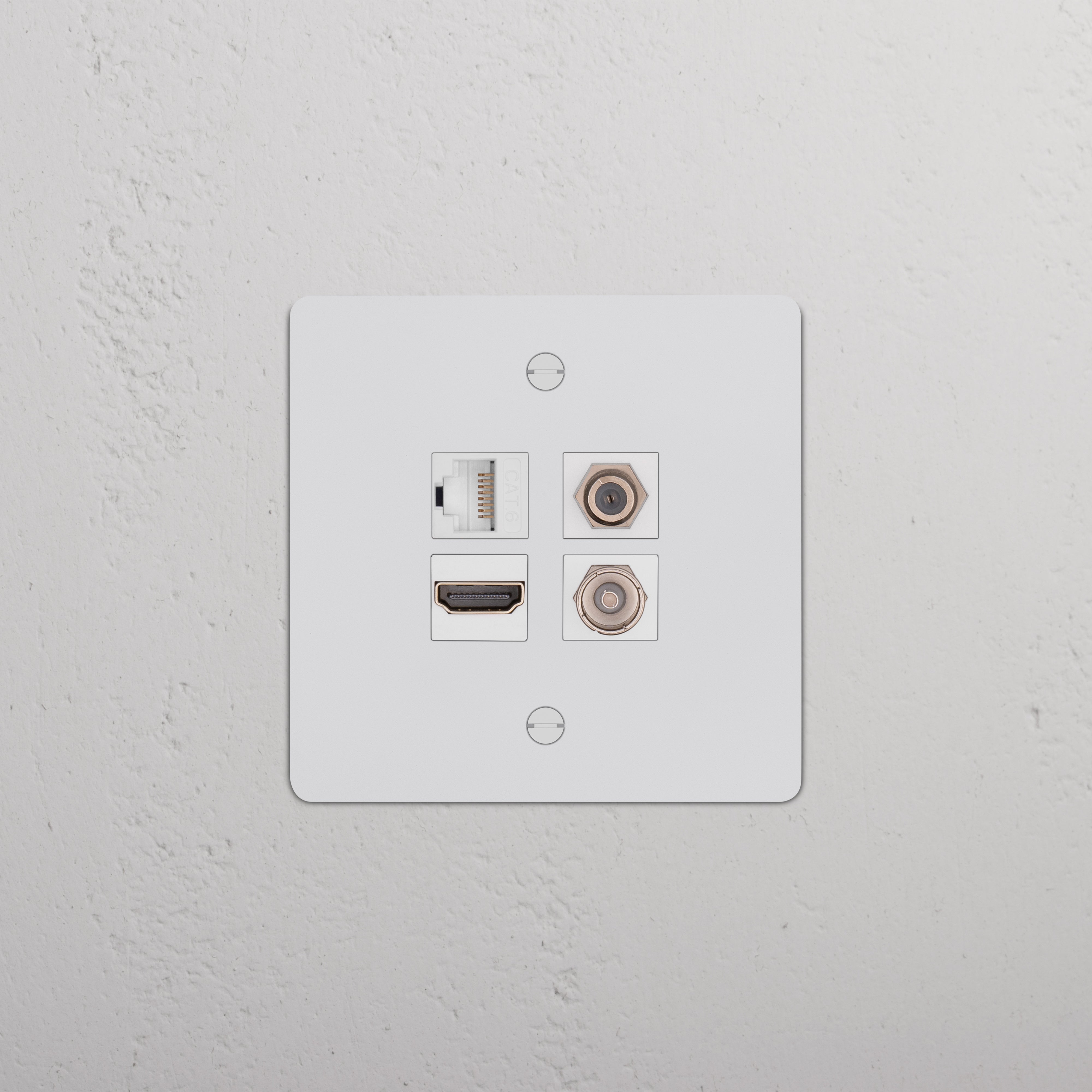 This single mixed socket combines a TV, satellite, HDMI and CAT6 socket on one plate and keeps cable clutter to a minimum.