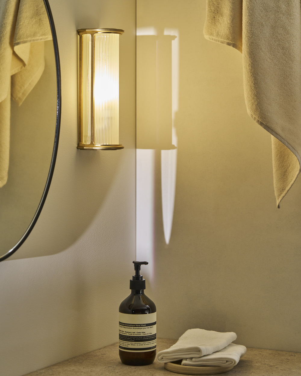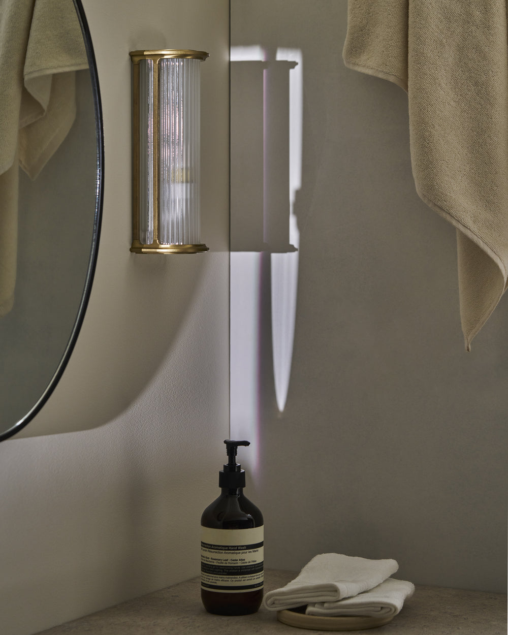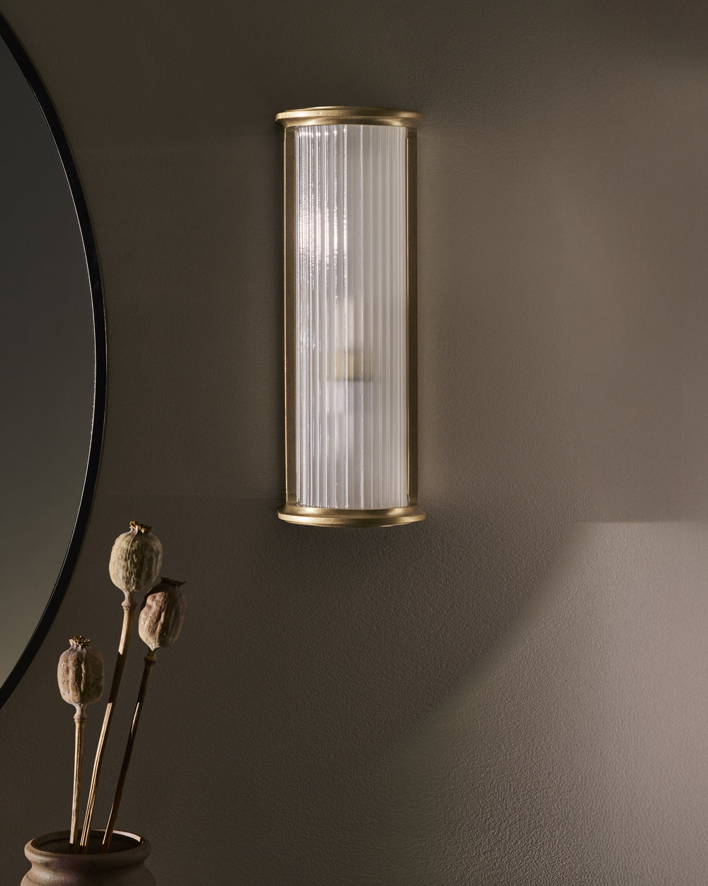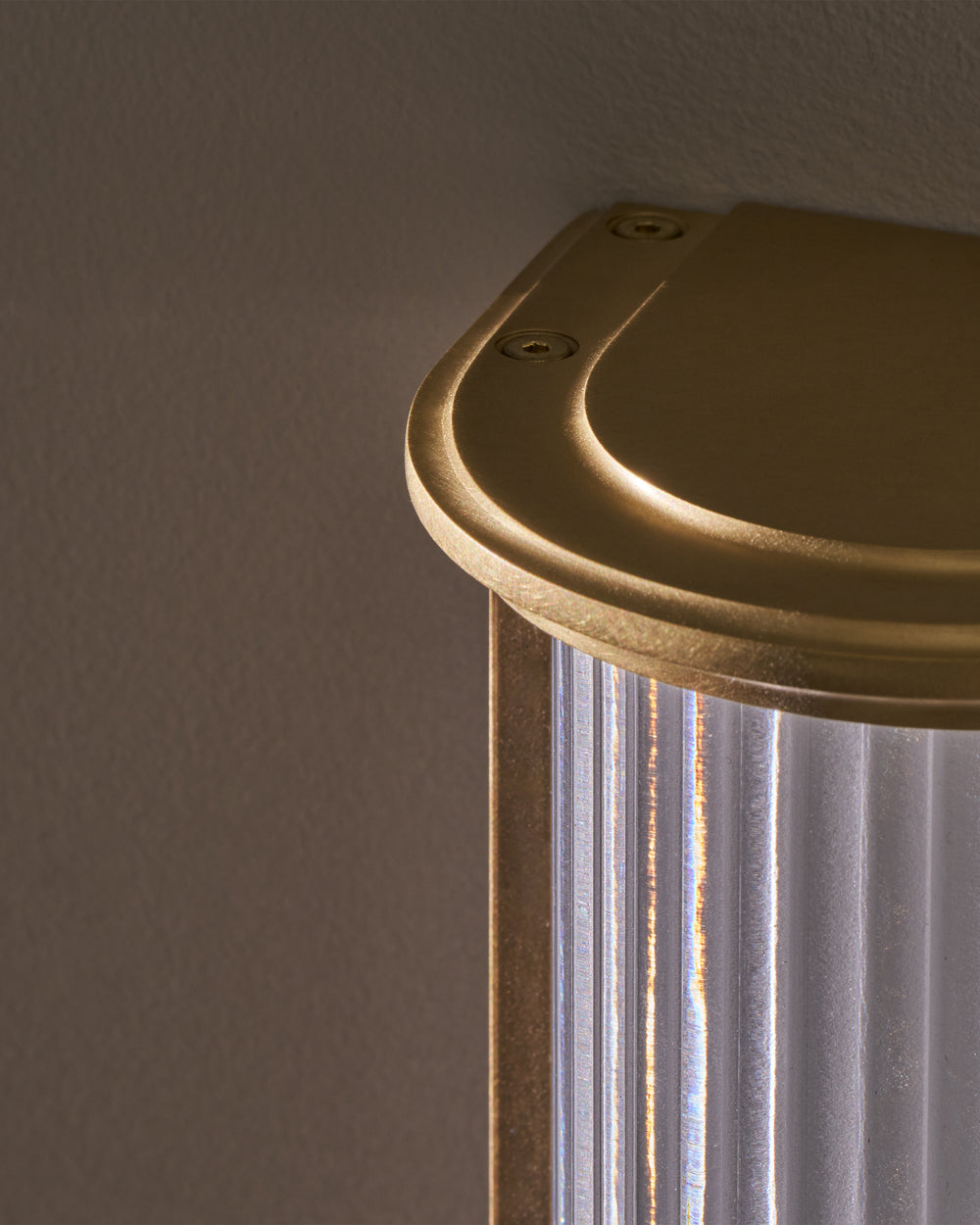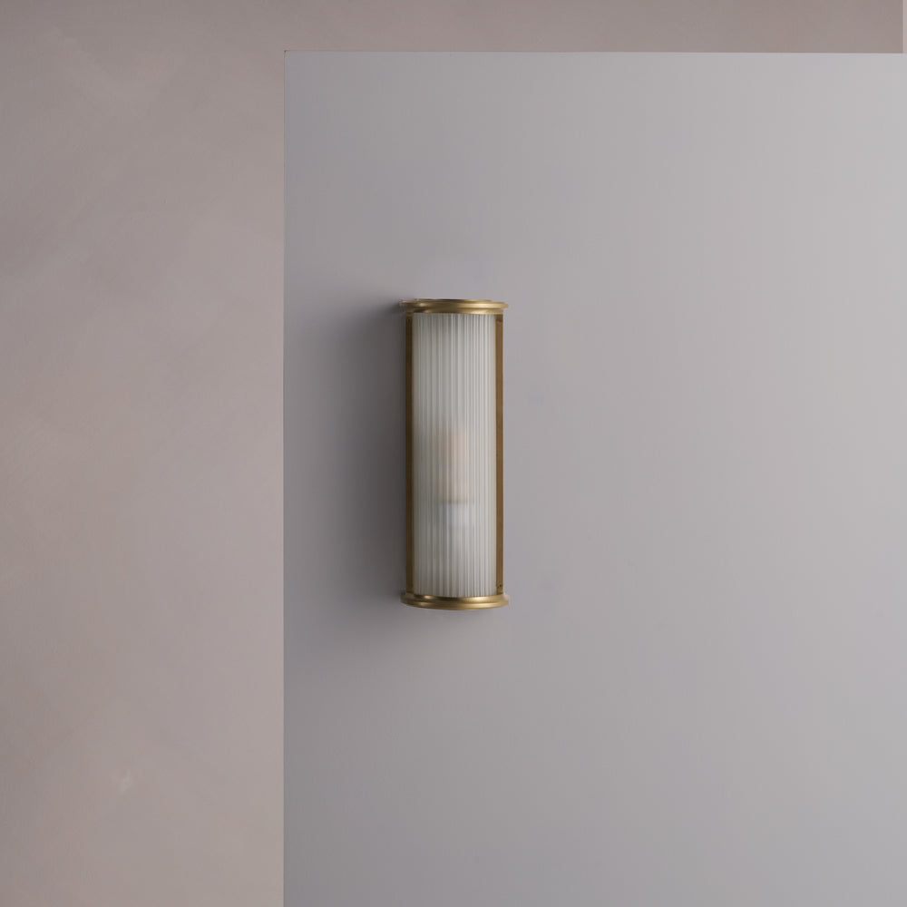 Bank is our take on a box light featuring a sturdy solid brass frame that holds a frosted fluted glass shade. The internal parts have been powder coated in white, so it looks great whether it’s switched on or off.