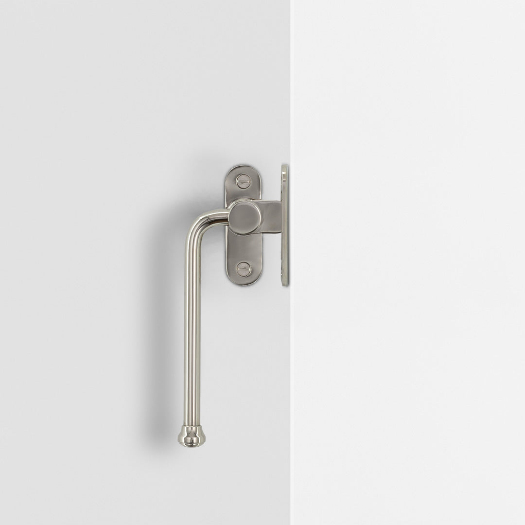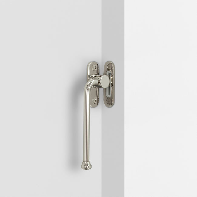 This version has a two-part handle mechanism with a catch that’s designed to be recessed into the side of the window frame.