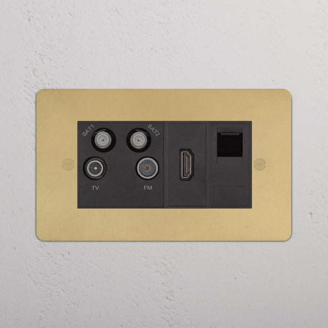This double mixed socket combines an aerial socket, HDMI and CAT6 socket on one plate and keeps cable clutter to a minimum.