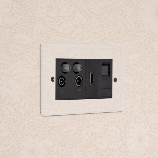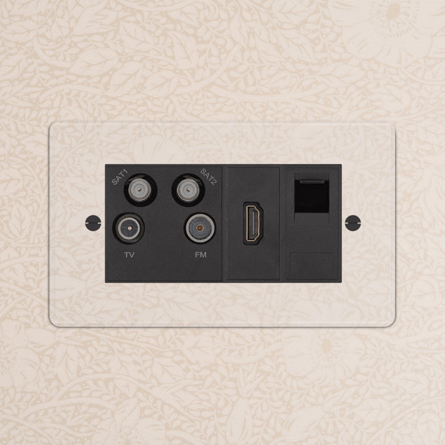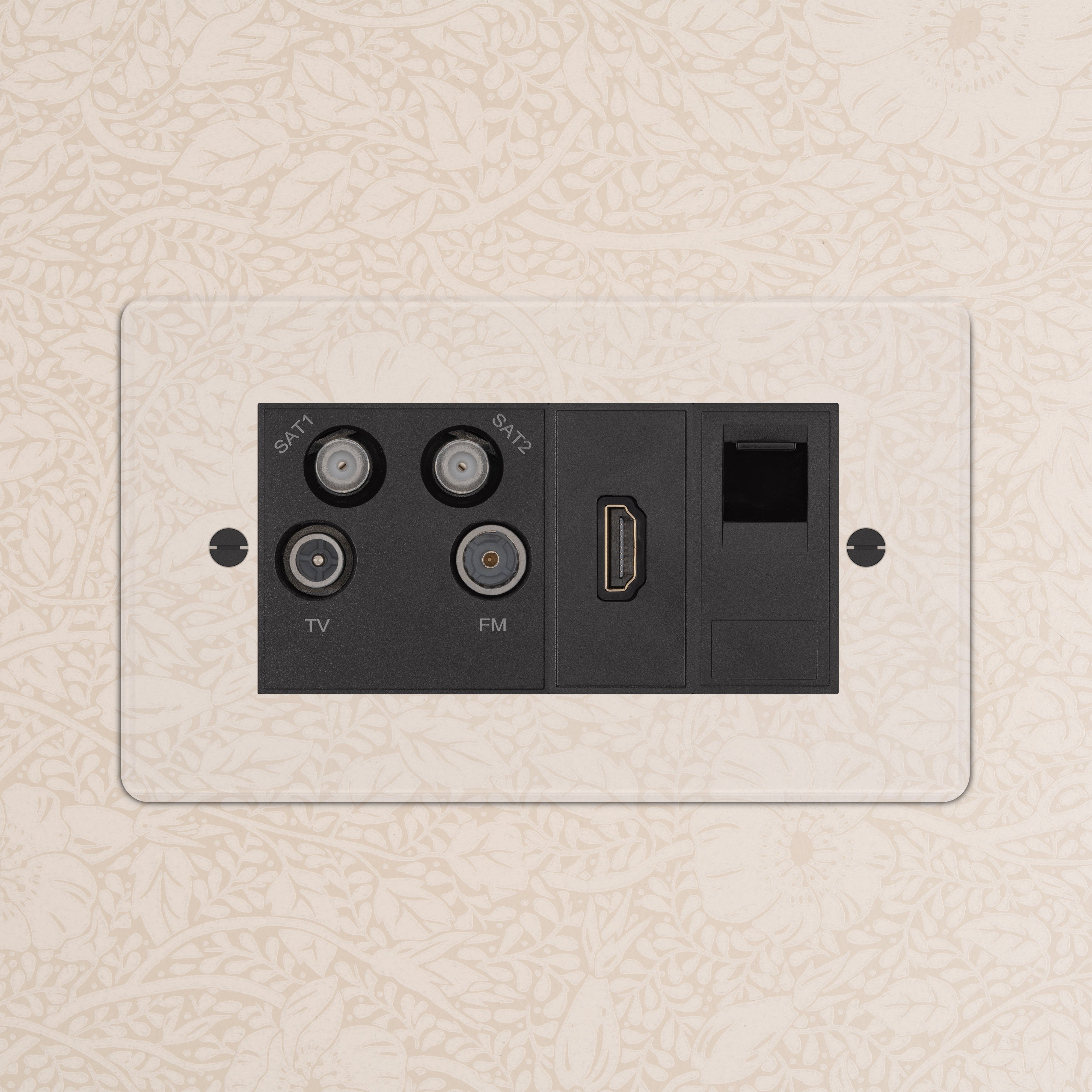 This double mixed socket combines an aerial socket, HDMI and CAT6 socket on one plate and keeps cable clutter to a minimum.
