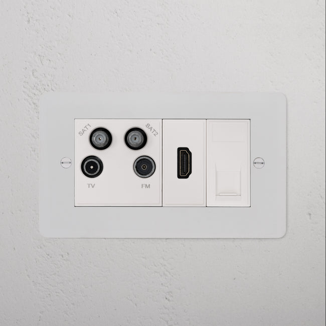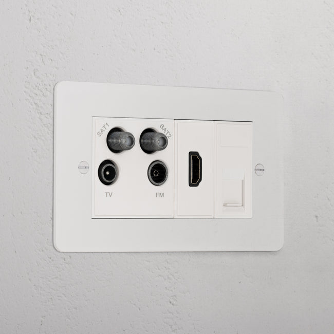This double mixed socket combines an aerial socket, HDMI and CAT6 socket on one plate and keeps cable clutter to a minimum.