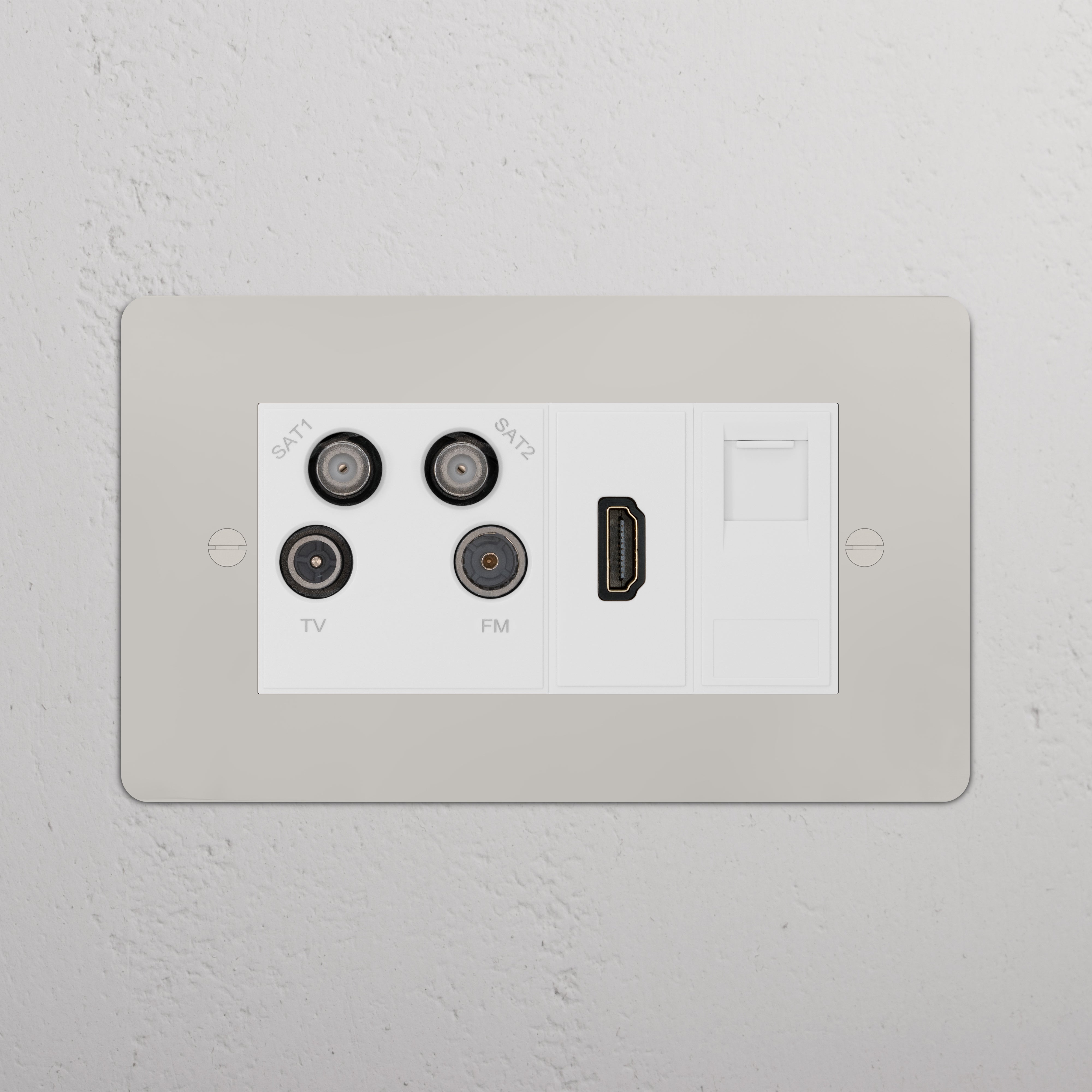 This double mixed socket combines an aerial socket, HDMI and CAT6 socket on one plate and keeps cable clutter to a minimum.