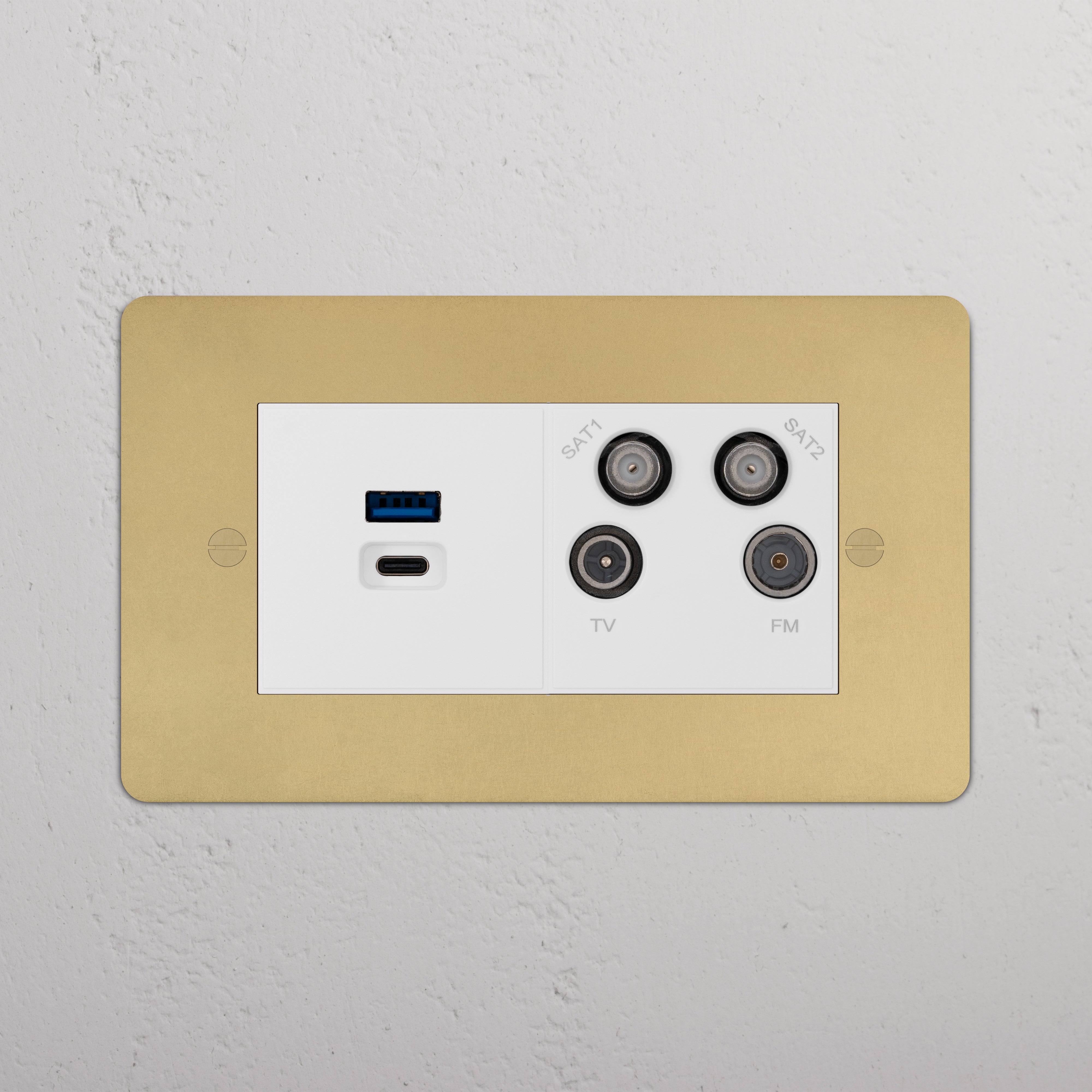 Neatly group two satellite connections, TV and FM aerials with USB A and C charging ports.