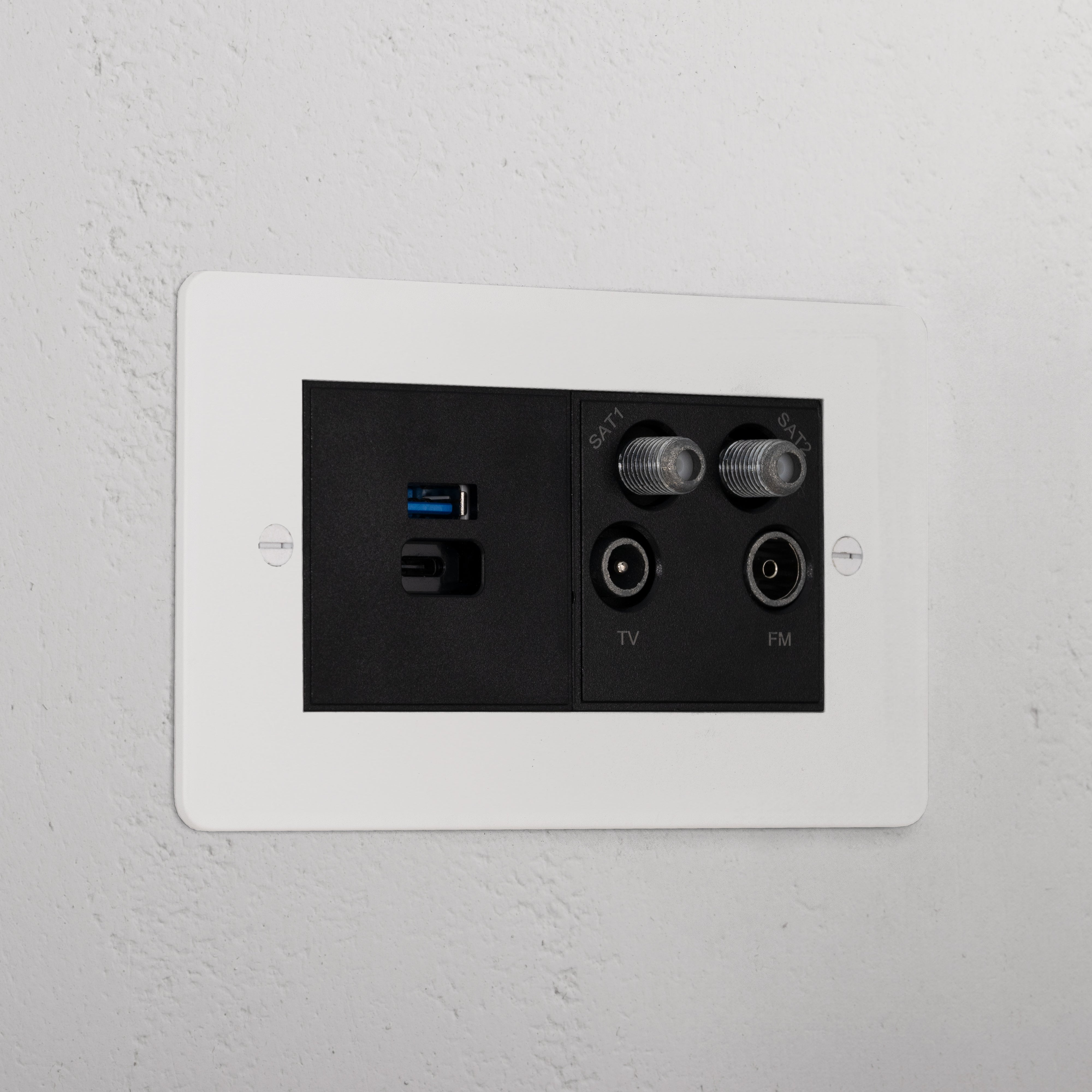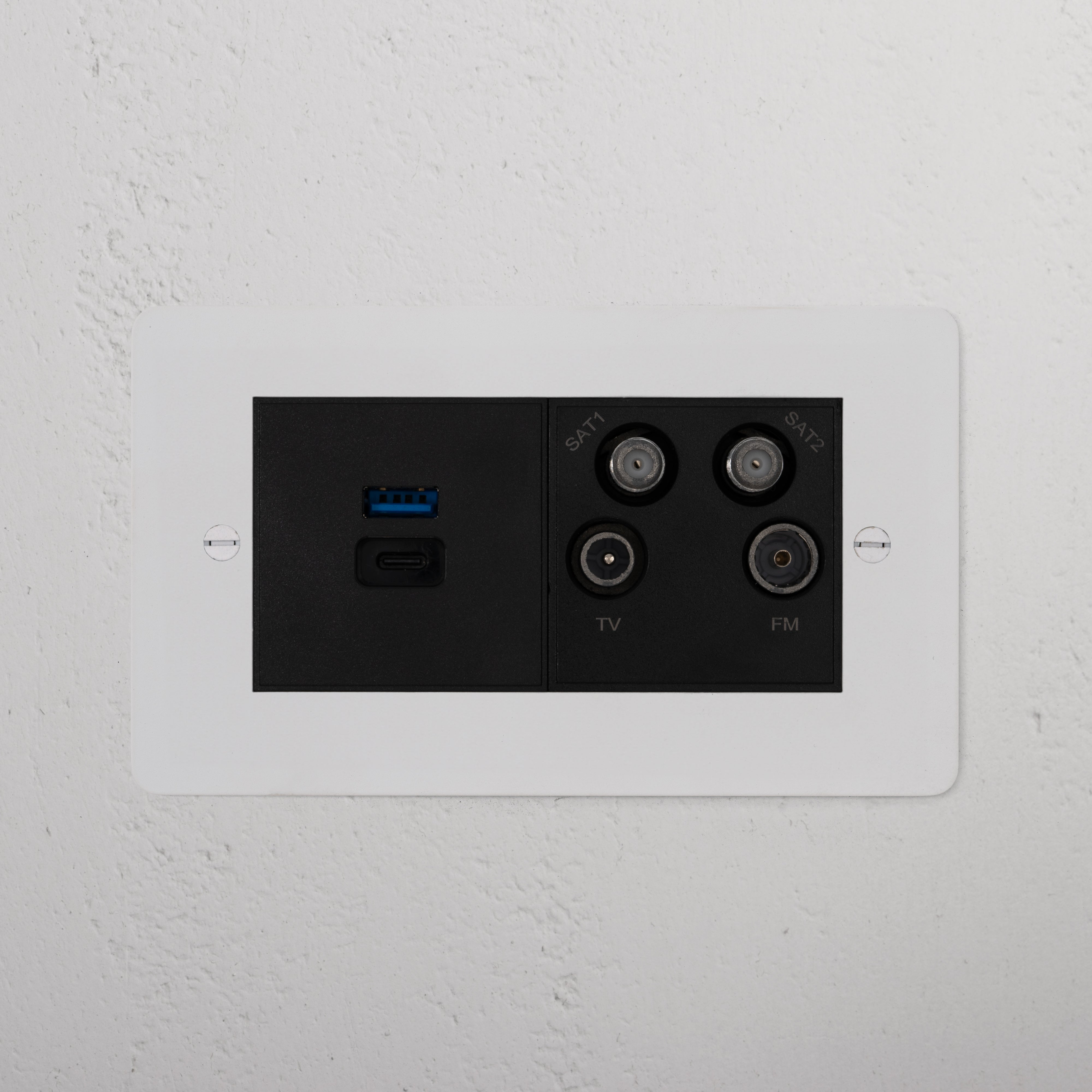 Neatly group two satellite connections plus a TV and FM aerial cable with this convenient socket. You can also fast charge up to two devices with the dual USB-A+C port.
