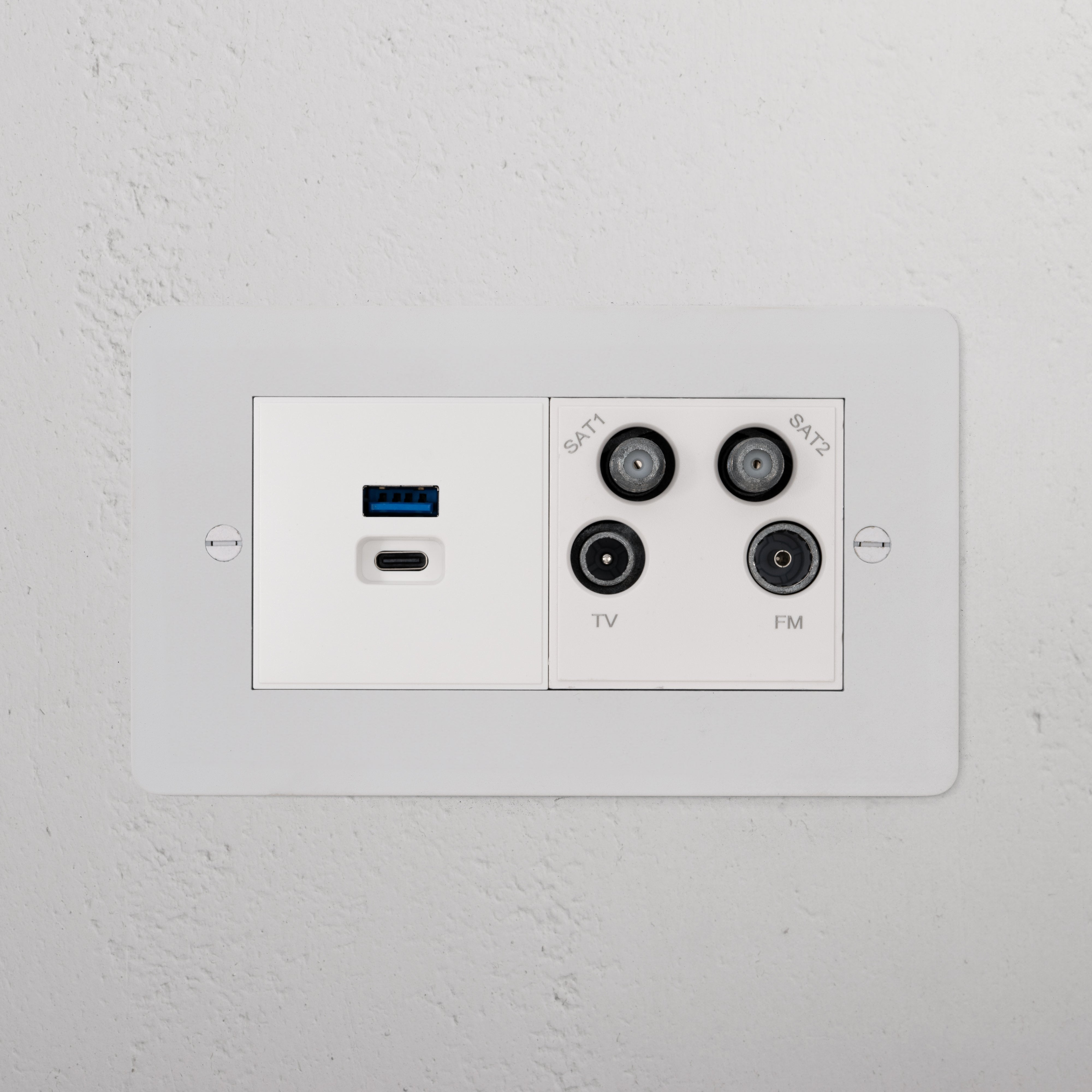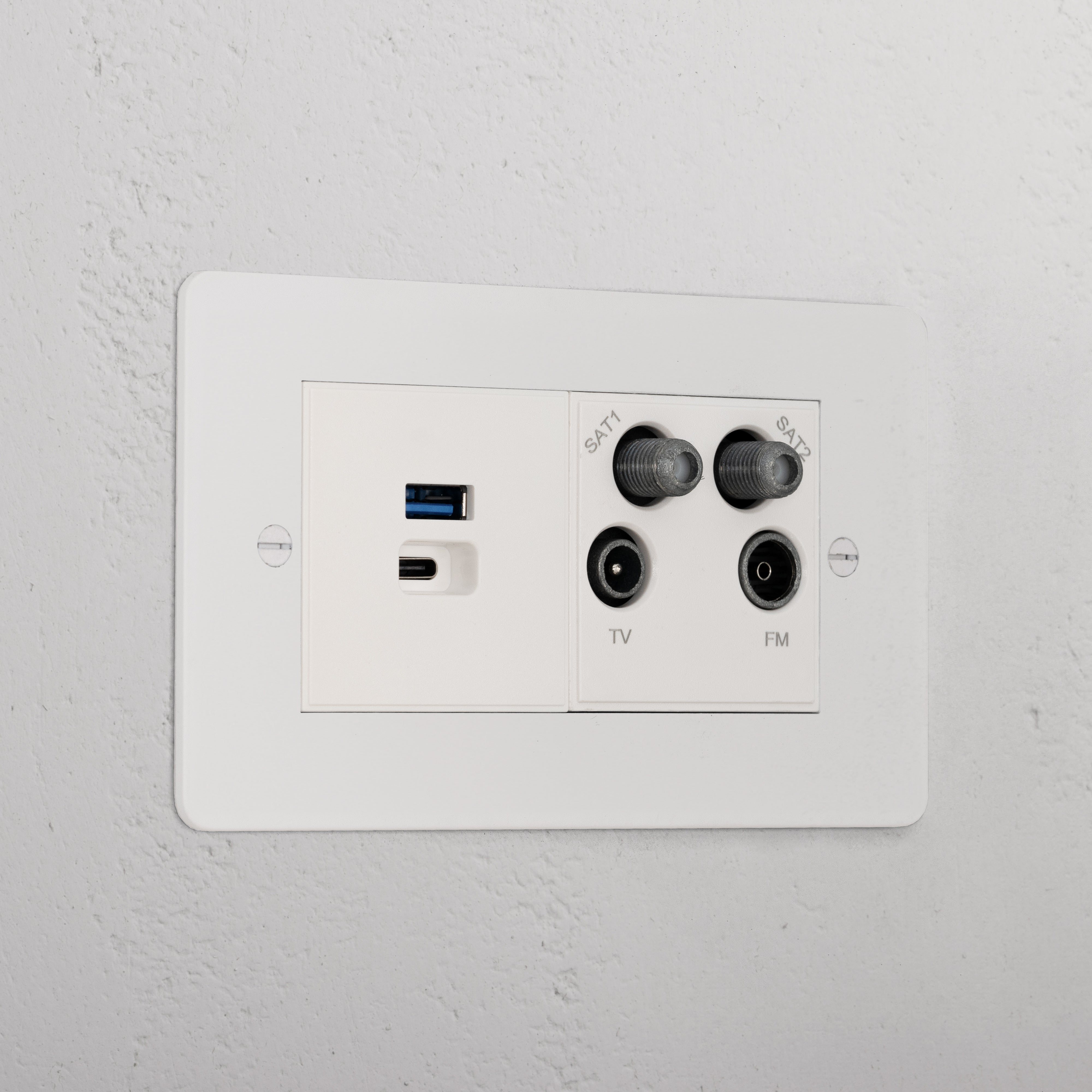 Neatly group two satellite connections plus a TV and FM aerial cable with this convenient socket. You can also fast charge up to two devices with the dual USB-A+C port.