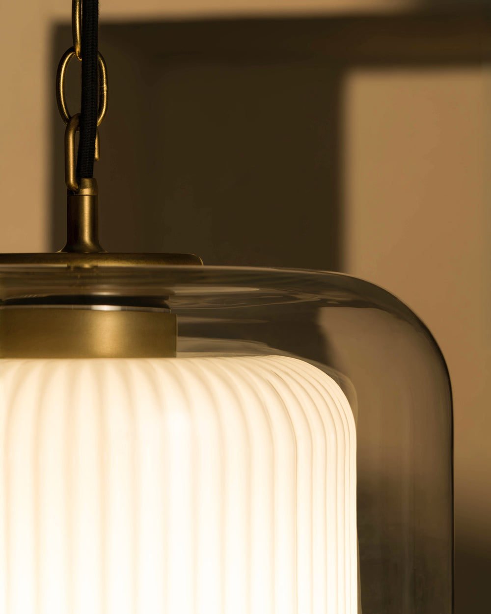 Windsor is our double-layer pendant that combines a fluted opal glass inner and clear glass outer shade.