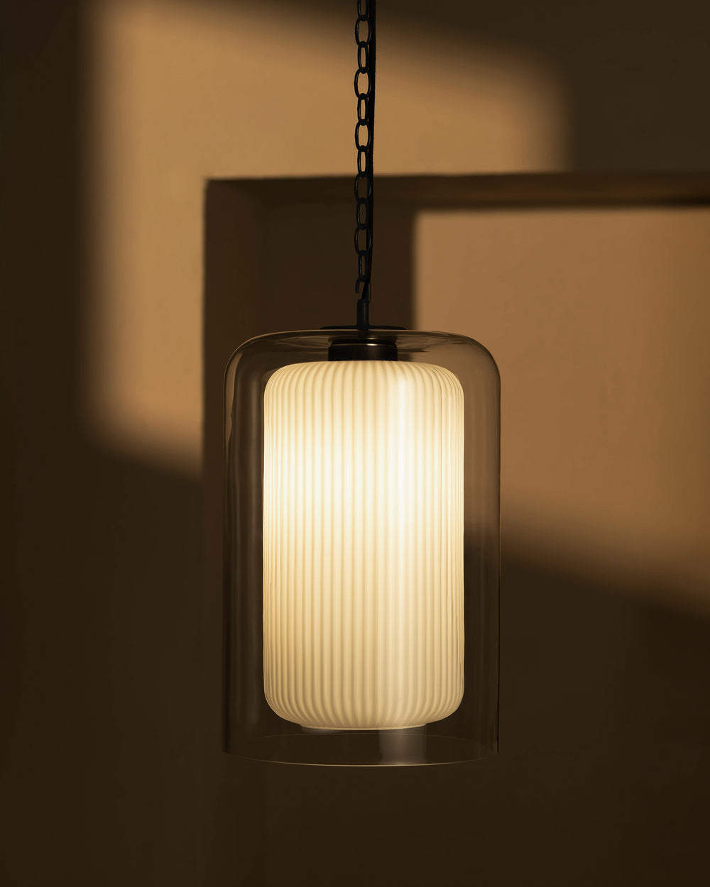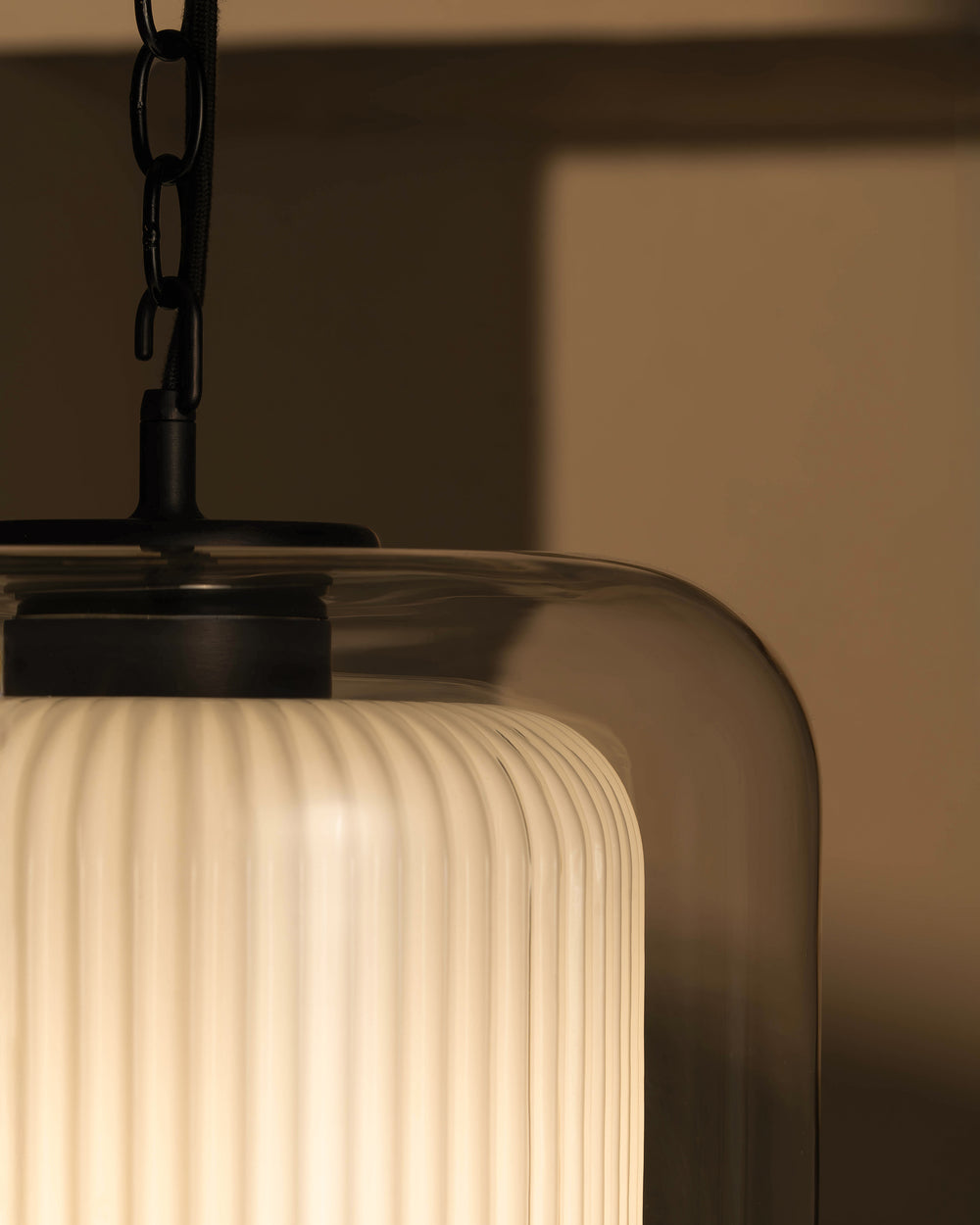 Windsor is our double-layer pendant that combines a fluted opal glass inner and clear glass outer shade.