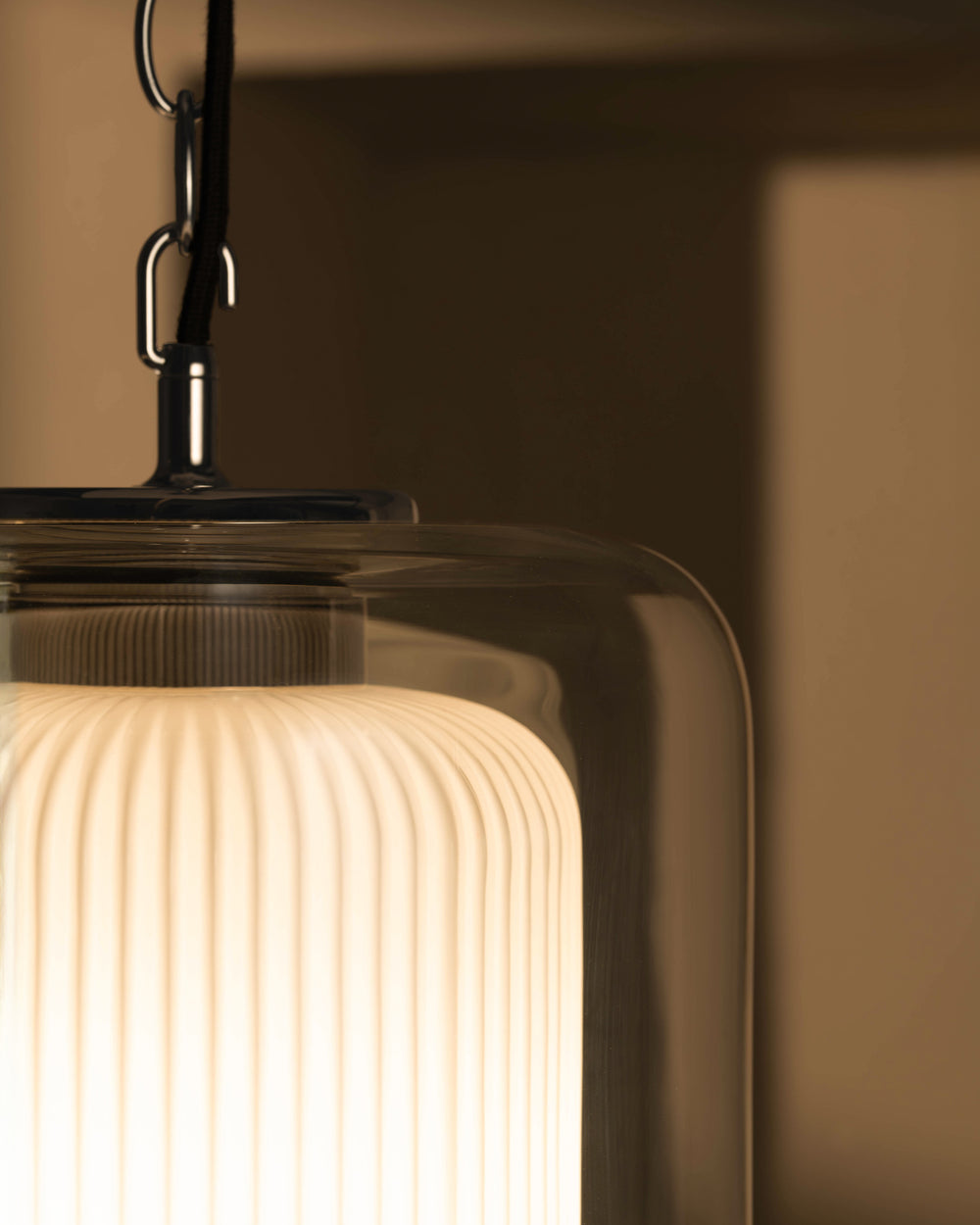 Windsor is our double-layer pendant that combines a fluted opal glass inner and clear glass outer shade.