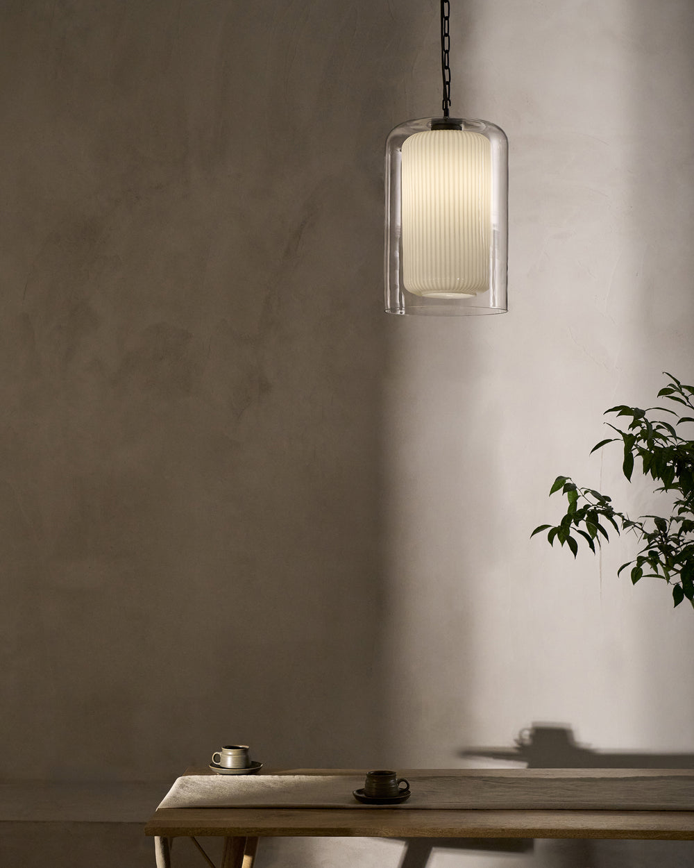 The milky white opal glass is glossier than fine porcelain, but the light it emits is just as warm, atmospheric and free from glare. The shade’s fluting allows for 360-degree light diffusion.